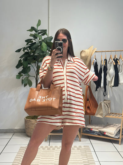 STRIPED ROMPER - RUST