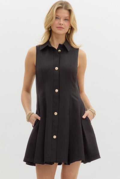 PLEATED DRESS - BLACK