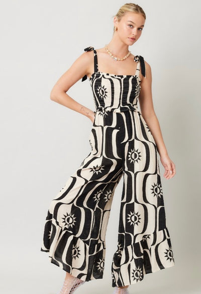 SMOCKED JUMPSUIT - BLACK