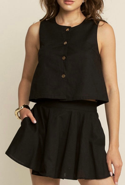 LINEN SKORT SET - BLACK